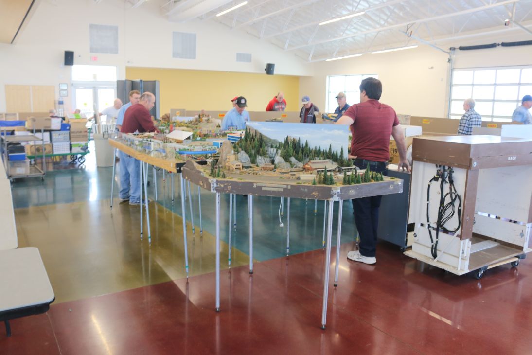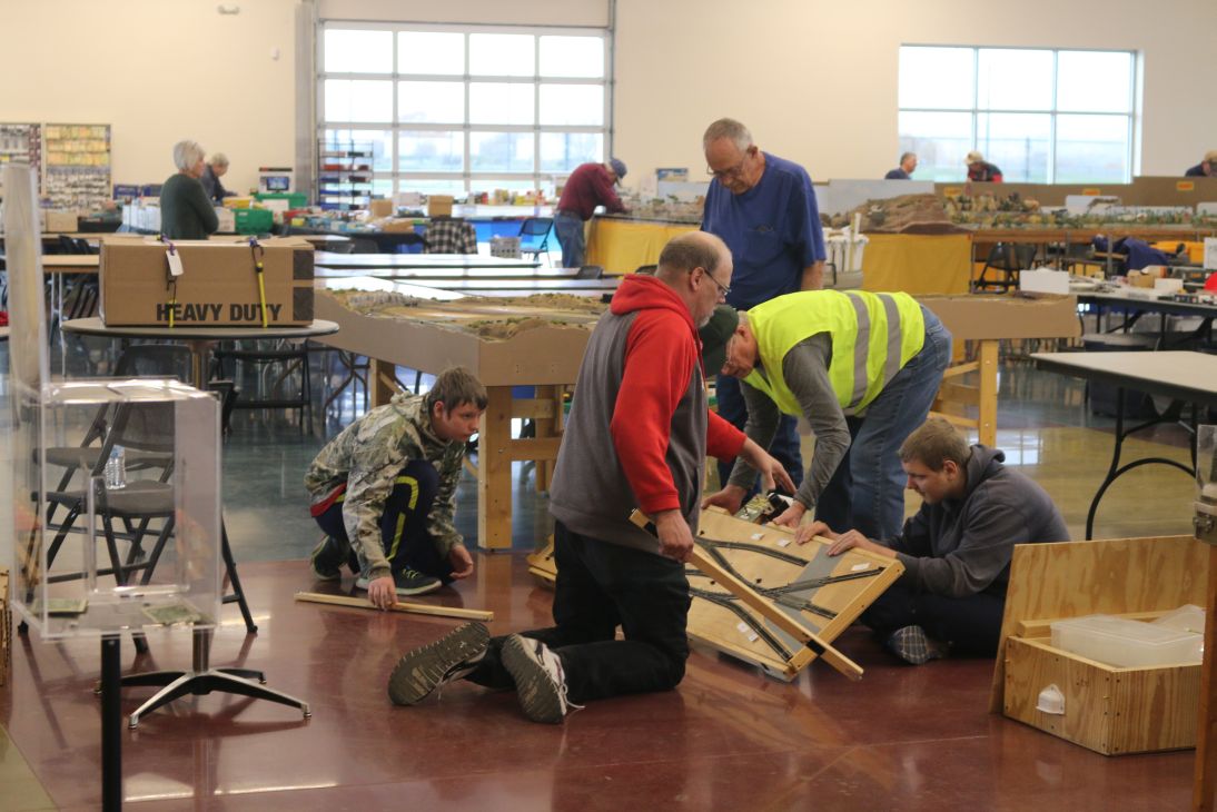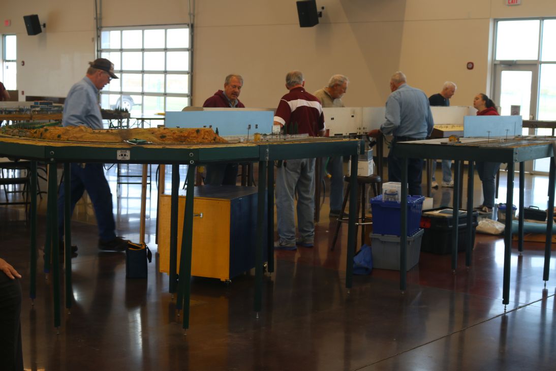 Assembling, in the center of the room, the ASHOME HO module club. It is normally located at 2225 Wyoming NE, next to Souper Salad! They're there Mon., Wed. 10-3pm & Saturday 10-4pm.