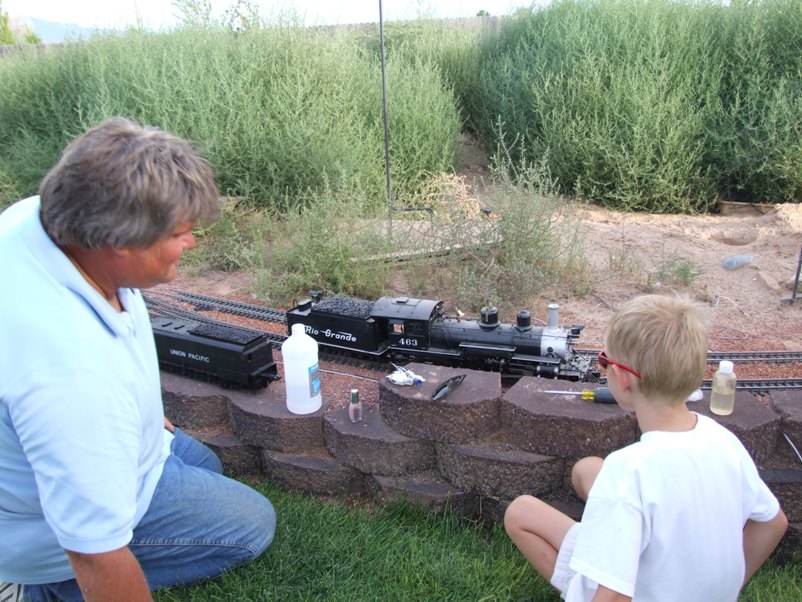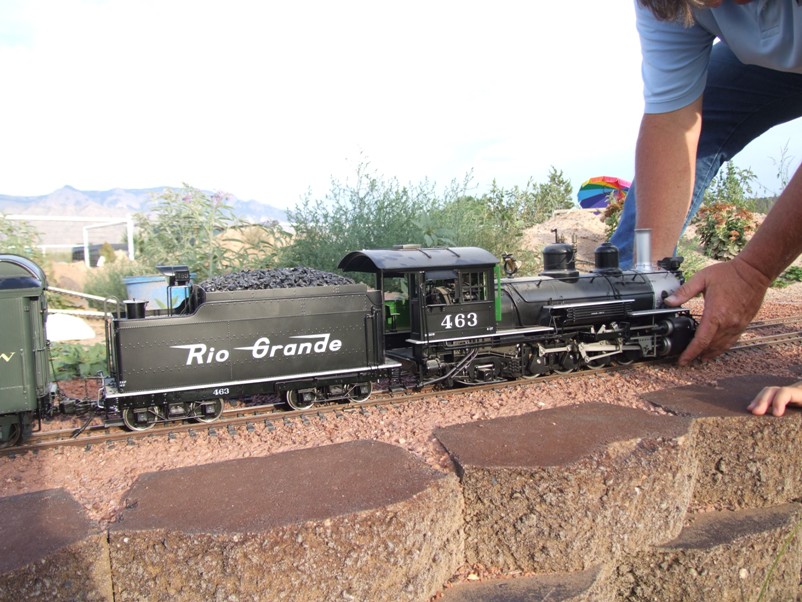 Their new layout is all stainless steel rail and 20 foot radius minimum. Gentle curves and minimal grades made for a smooth operation. They are running track power and operating 1:32 and 1:20.3 equipment. |