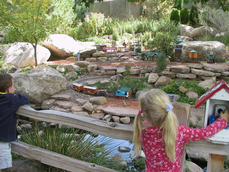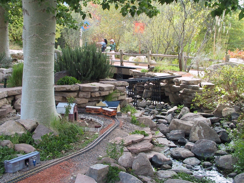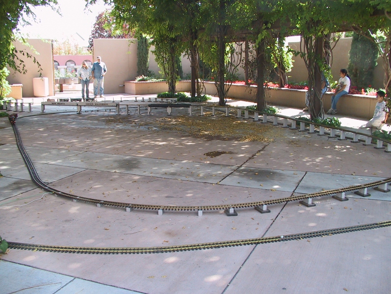 The President, Bullock, coordinated a setup in the Ceremonial Gardens October 7 & 8. Bullock and the Beck's setup two loops using the clubs track and the up and over. Operations were by track power. Beck brought a battery power Loco and it ran over 3 hours pulling a consist of 5 cars. Many people were touring the Gardens after the balloon fiesta. Some club members were running on the permanent layout so some photos of their fun was added.