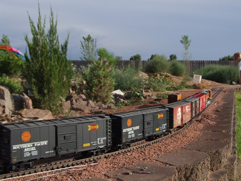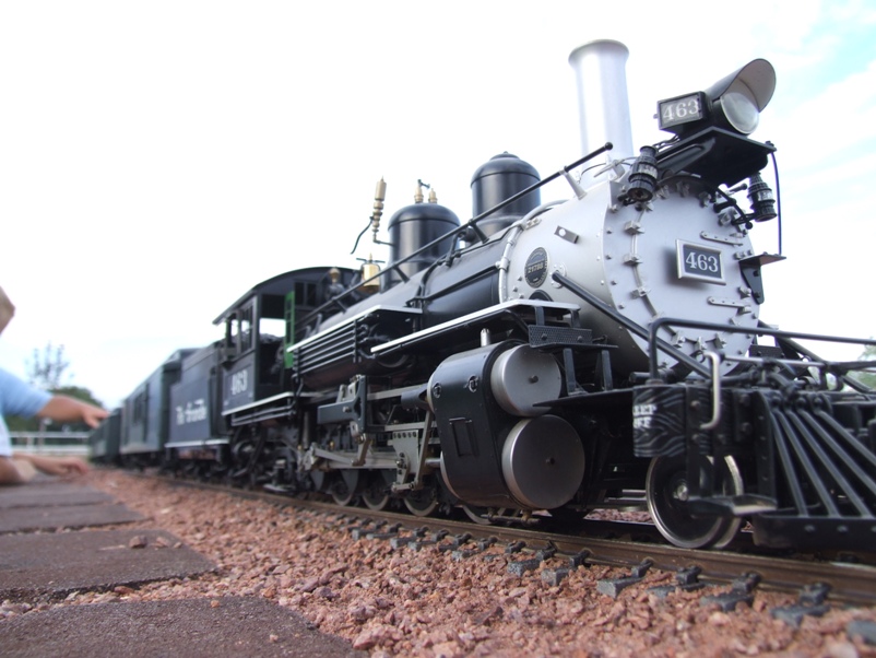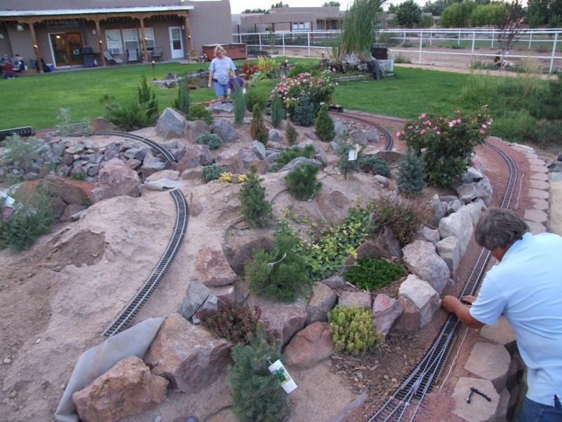 Their new layout is all stainless steel rail and 20 foot radius minimum. Gentle curves and minimal grades made for a smooth operation. They are running track power and operating 1:32 and 1:20.3 equipment. |