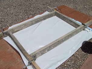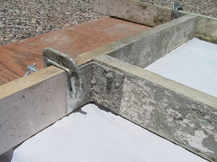 I used aluminum angle for the corner braces. I screwed them flush to one end and used a C clamp for adjustment. I cast on top of a piece of plywood covered with some kind of plastic to keep the water from warping the plywood. I also oiled up the sides of the forms so the concrete would not stick to the wood. I used motor oil and put it on with a paper towel. A good coating is required. I use quikrete 5000. I tried their fast setting concrete but it was hard to work with. You can add coloring to get different effects. Experiment, have fun.